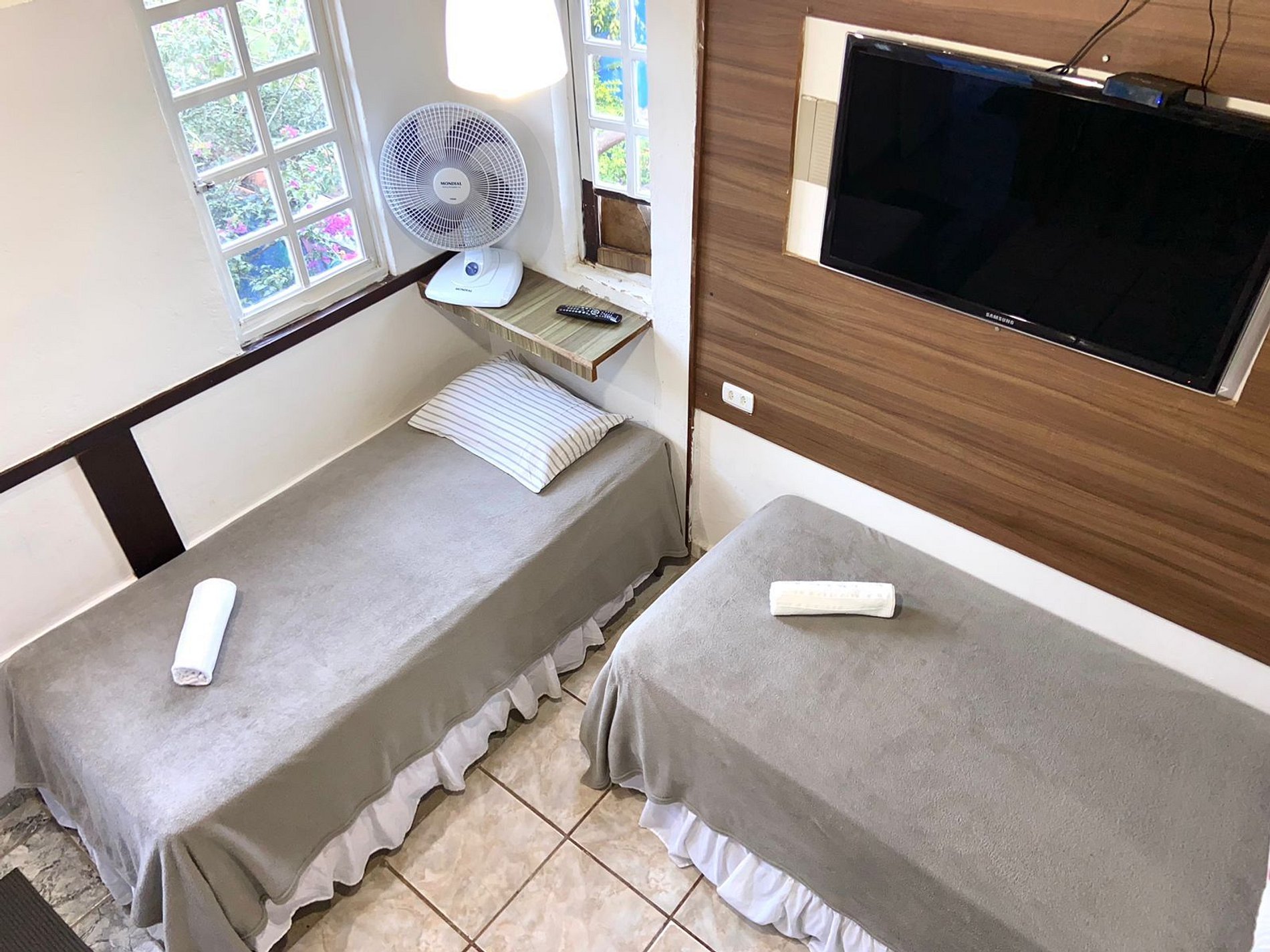 Nossa Chalé é Duplex, na parte de baixo tem a sala acoplado a cozinha e ao banheiro privativo e + 2 camas de solteiro, no mesanino tem 2 cama de casal + 1 Cama de Solteiro, com ar-condicionado. O chalé tem Cozinha com fogão. micro-ondas, frigobar, utensílios de cozinha, Tv com todos os canais, roupa de cama, toalhas e banheiro privativo, dando total acesso as nossas áreas comuns como Piscina, estacionamento Churrasqueira e cozinha compartilhada.