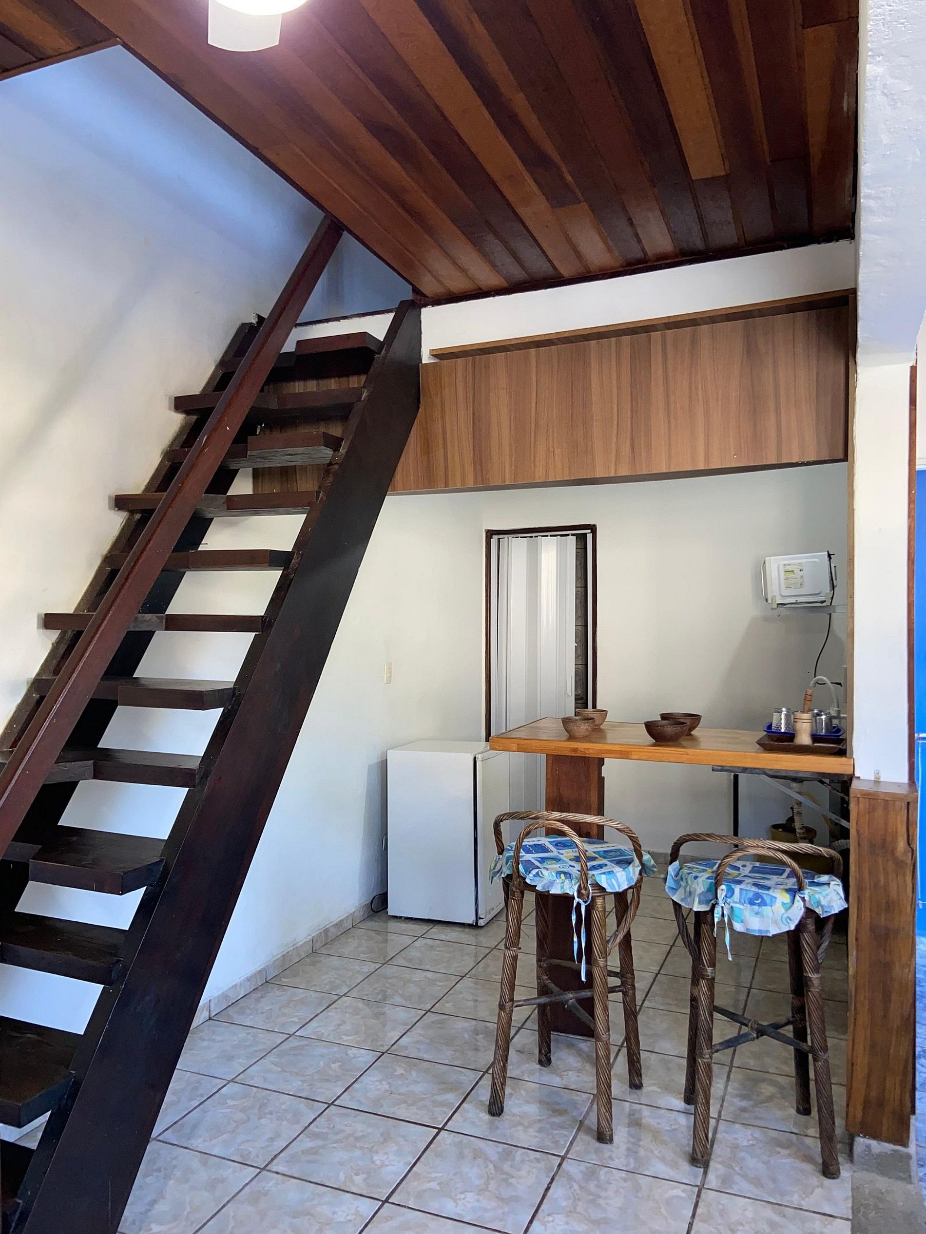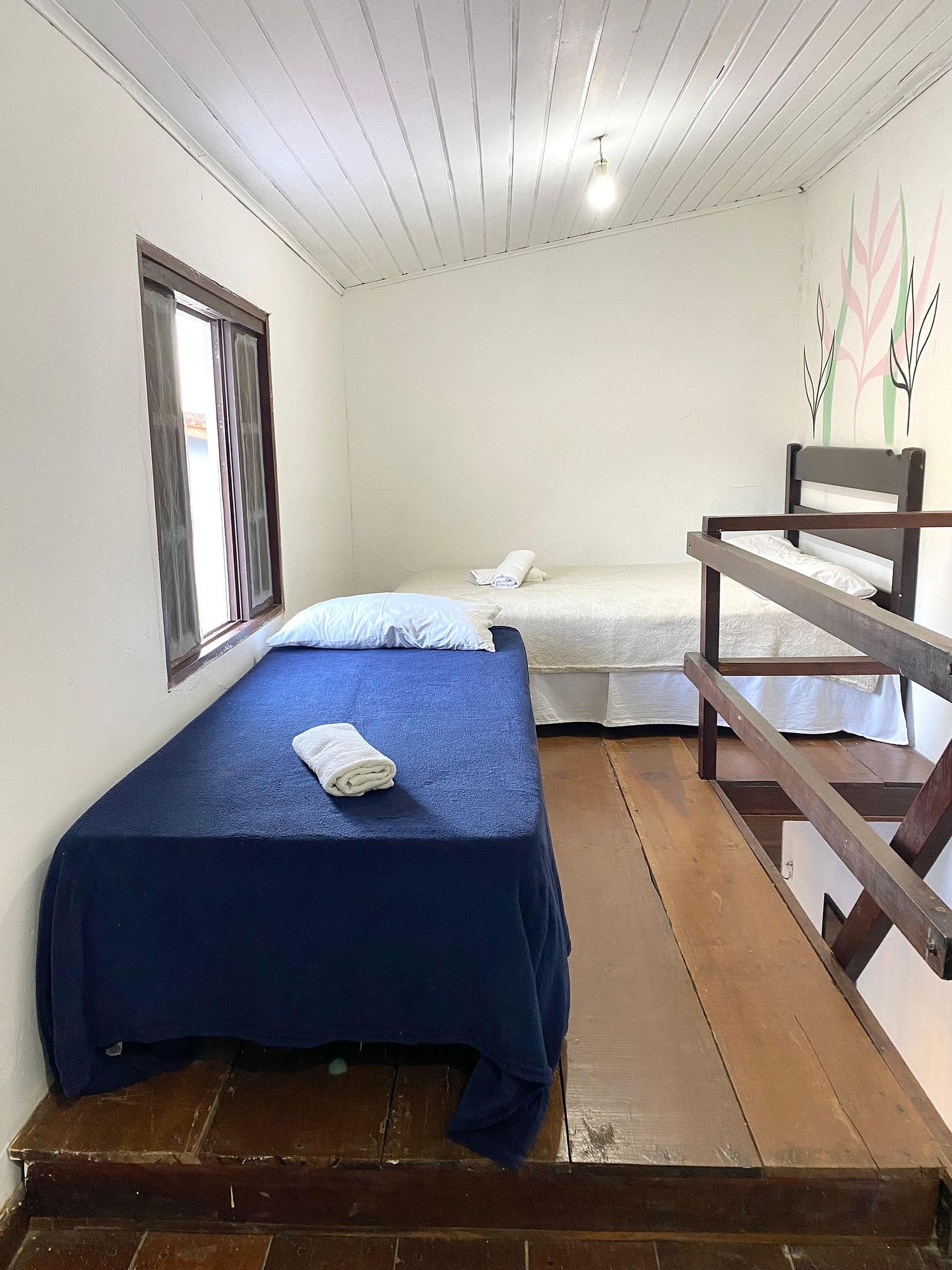 Nossa Chalé é Duplex, na parte de baixo tem a sala acoplado a cozinha e ao banheiro privativo e + 2 camas de solteiro, no mesanino tem 2 cama de casal + 1 Cama de Solteiro, com ar-condicionado. O chalé tem Cozinha com fogão. micro-ondas, frigobar, utensílios de cozinha, Tv com todos os canais, roupa de cama, toalhas e banheiro privativo, dando total acesso as nossas áreas comuns como Piscina, estacionamento Churrasqueira e cozinha compartilhada.